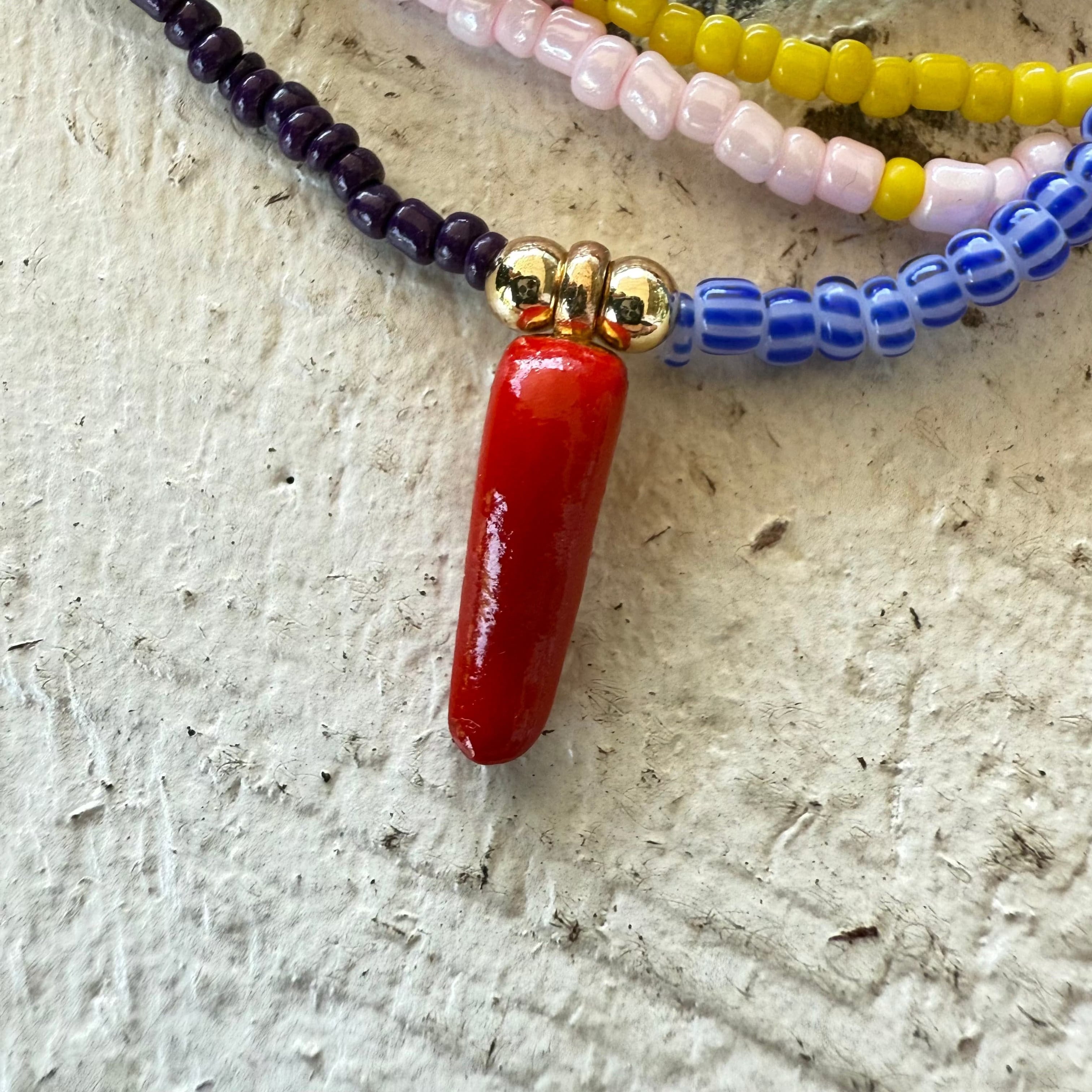 This gorgeous local handmade wrap bracelet features a Chilli Charm and bright pops of colour to complete any outfit.