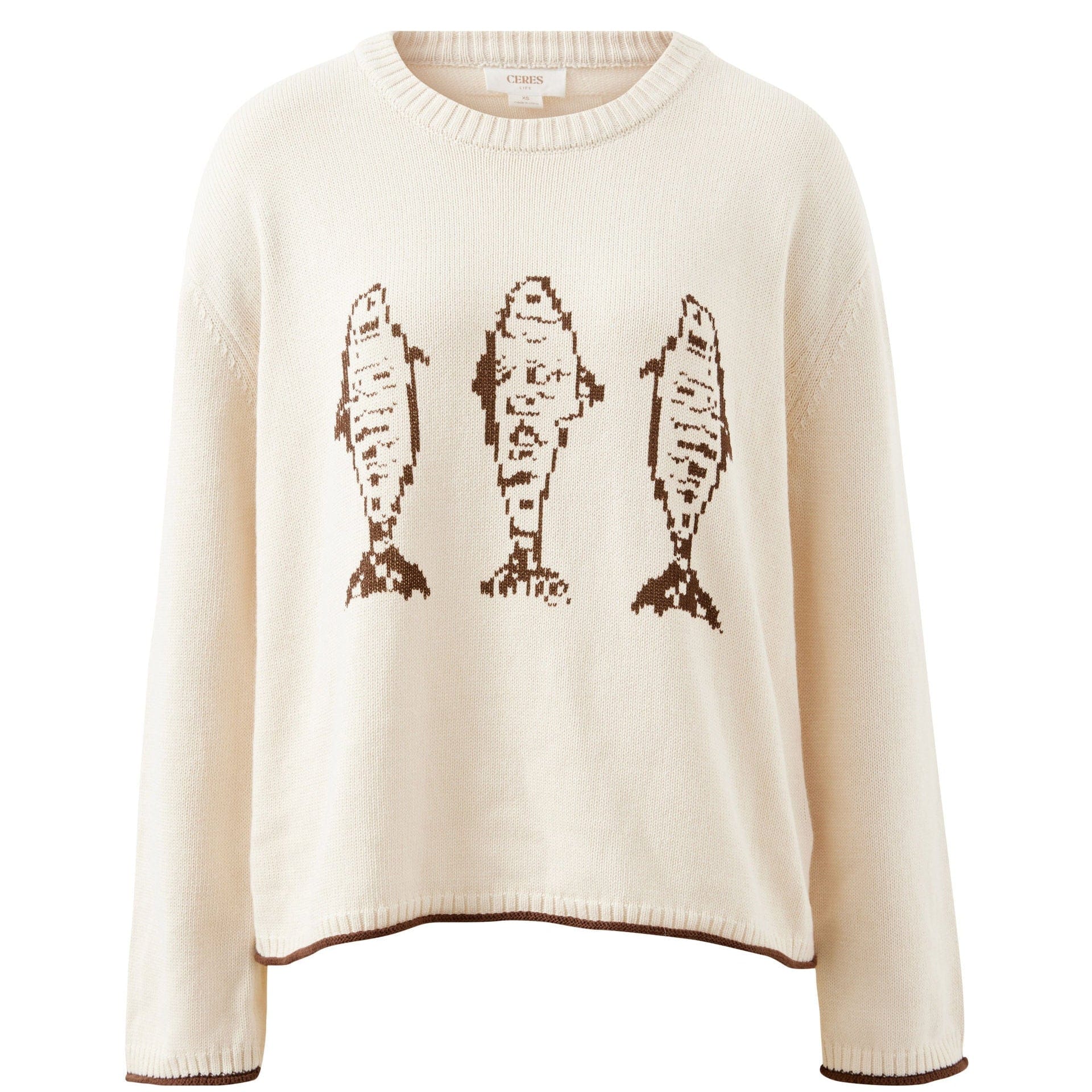 Featuring chocolate tipping on the sleeves and hem for an added touch of style, while the sardine print brings a fun touch. Perfect for weekend strolls or laid-back coffee dates.