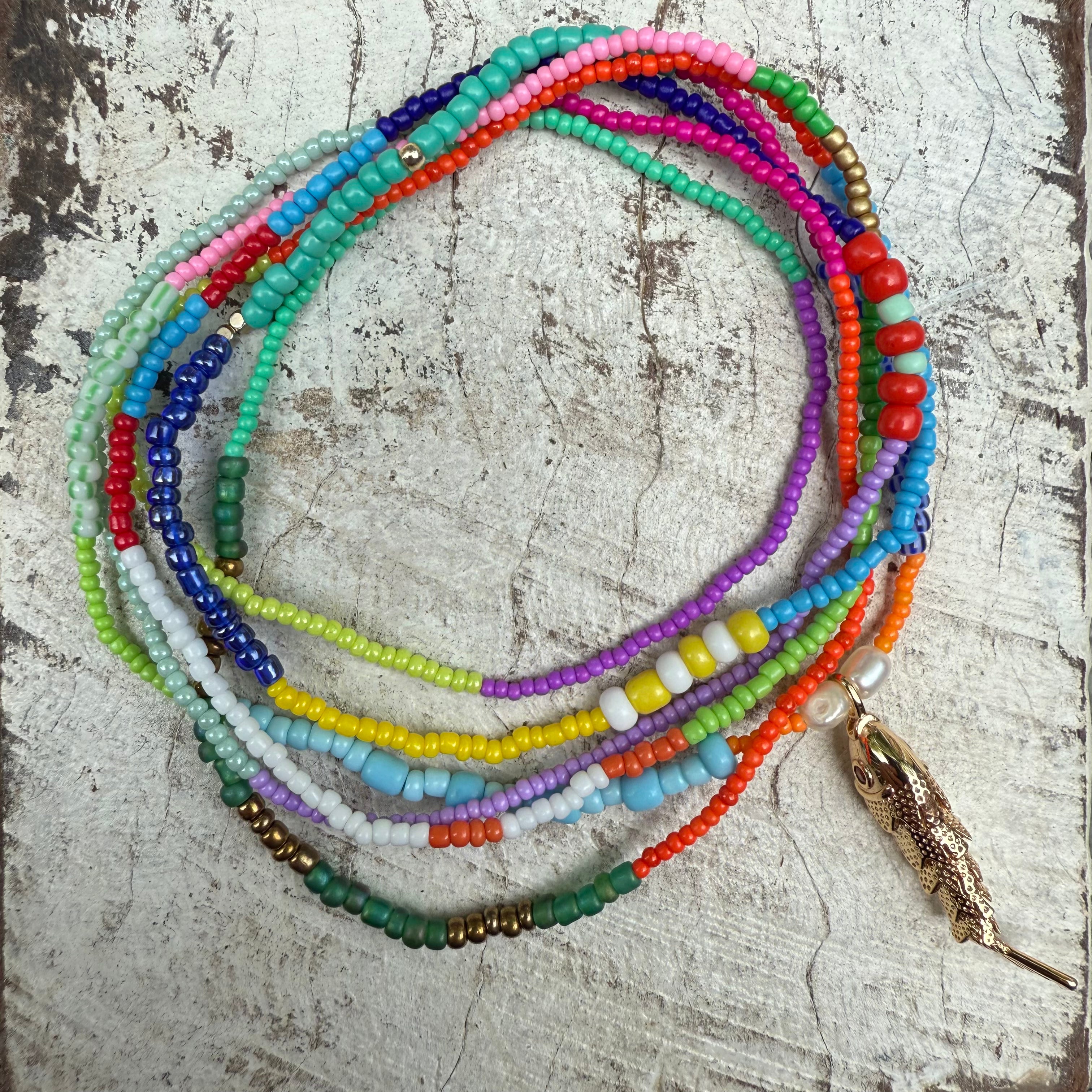 This gorgeous local handmade wrap bracelet features a Fish Charm and bright pops of colour to complete any outfit.