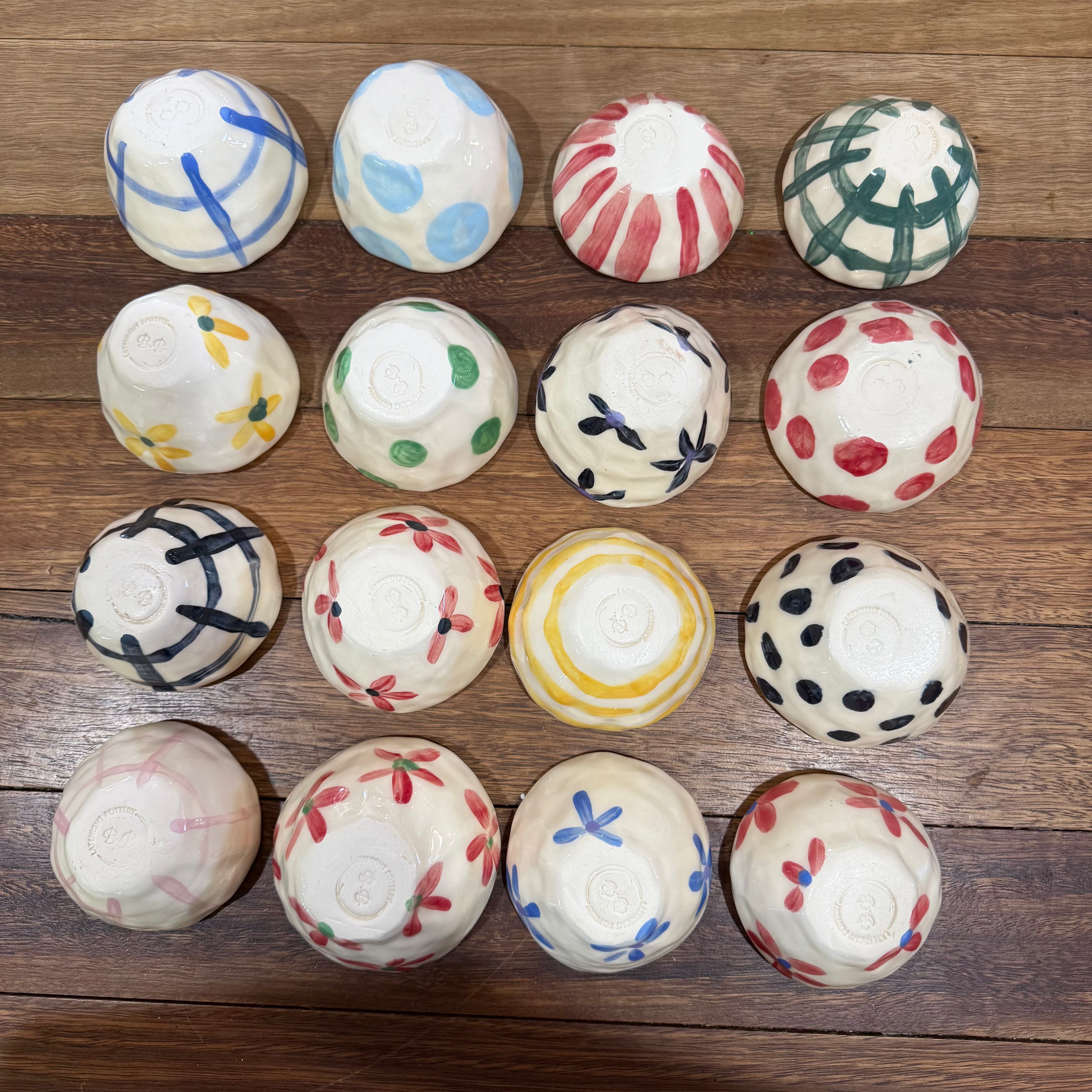 Each one is 100% handmade, painted and then fired in the kiln in Glen Innes.  They are bright and happy and make a great addition to a cheese board, or for all those little bits around the house.  They even look cute on their own or with some friends :-)  Your hardest decision will be choosing which ones to grab !